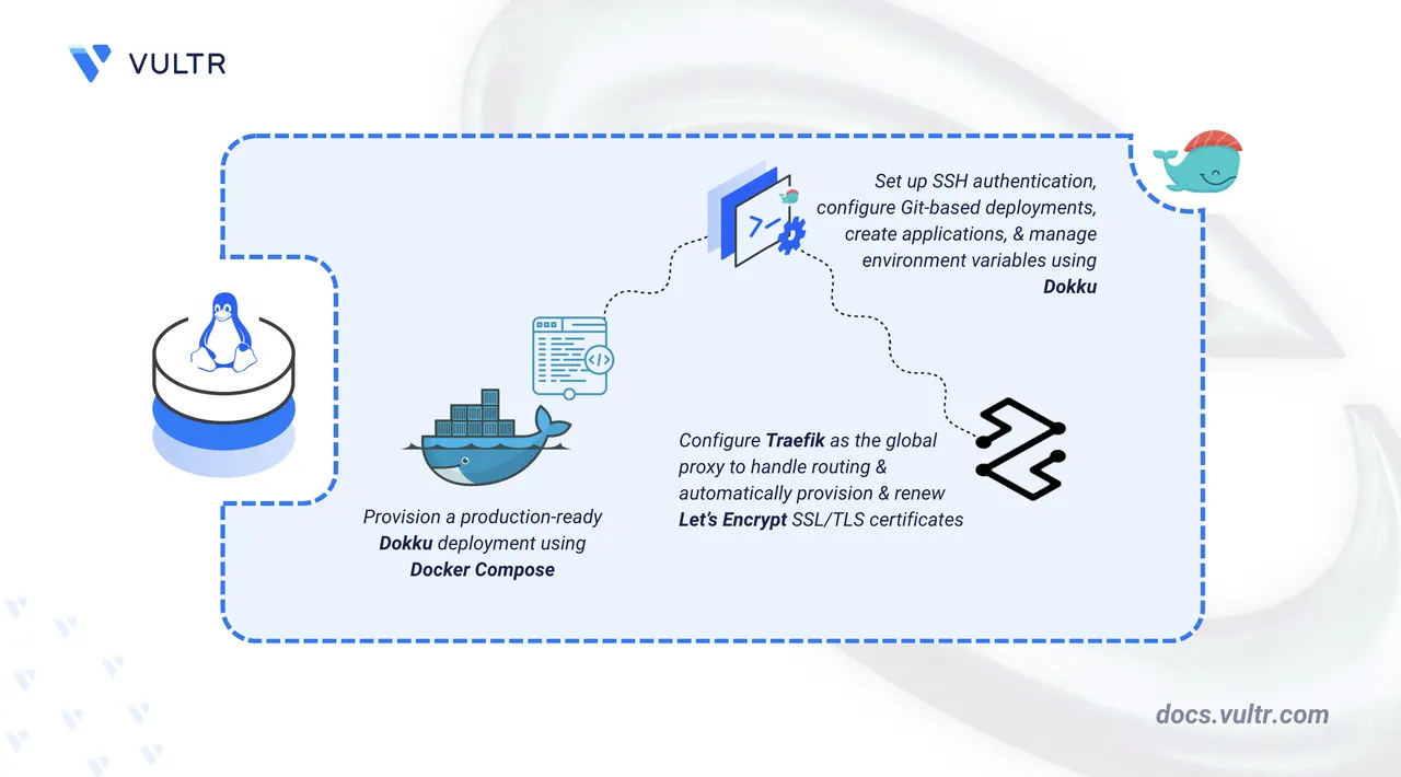 This article explains how to deploy Dokku on a Linux-based server using Docker Compose, configure SSH-based Git deployments, manage application environment variables, and enable automatic HTTPS with Let's Encrypt certificates through Traefik integration.