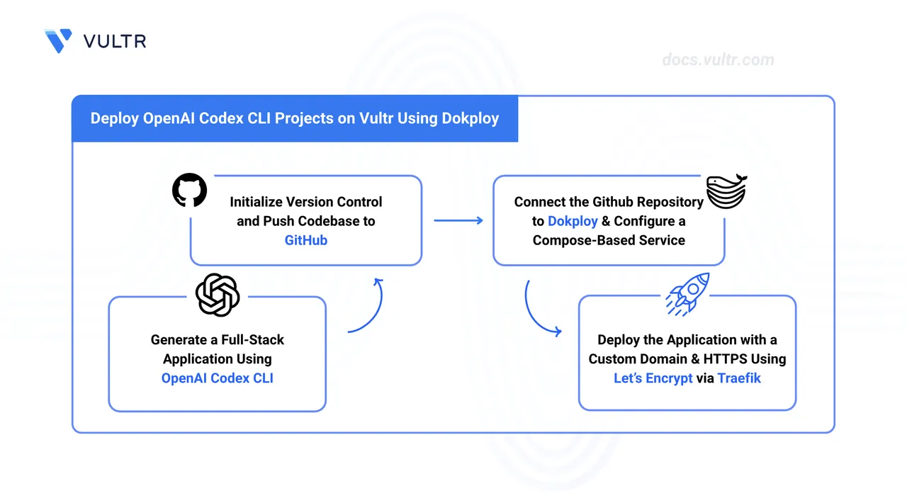 This guide explains how to install the Codex CLI, create a full-stack application, and deploy it on Vultr using Dokploy.