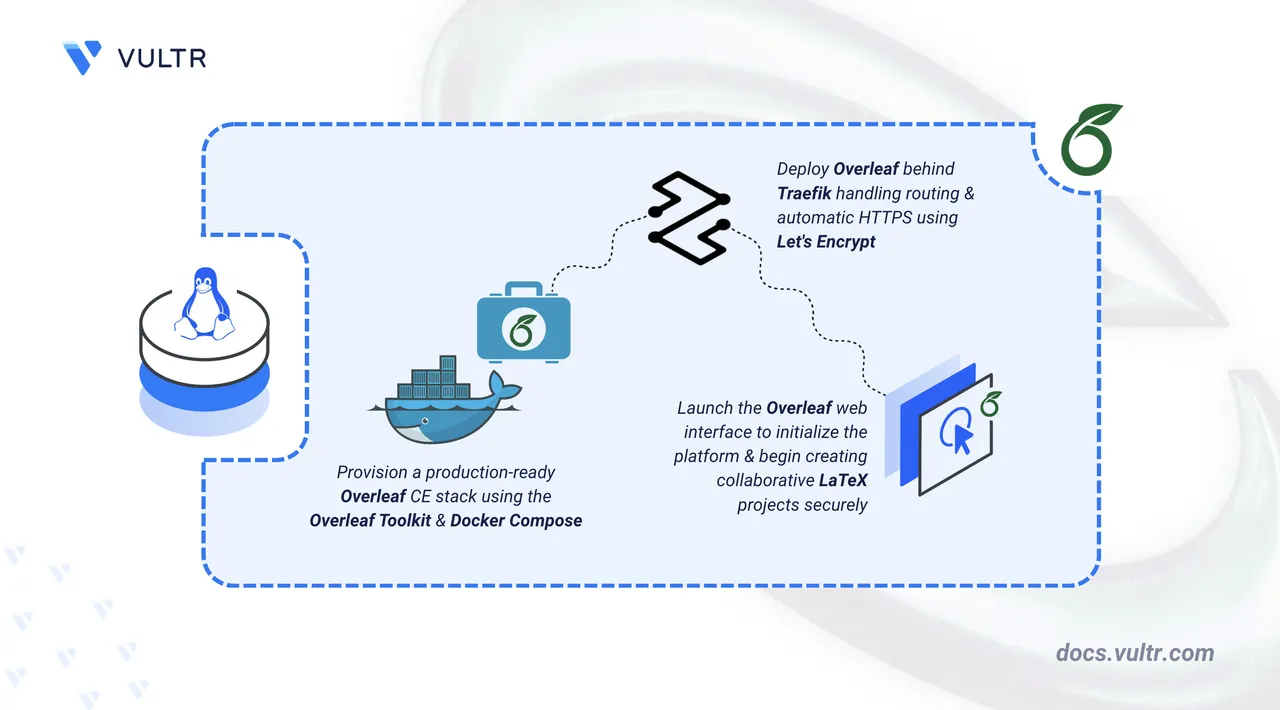 This article covers the deployment of Overleaf Community Edition on Linux using Docker Compose. It explains how to configure the Overleaf Toolkit and secure the installation with HTTPS using a Traefik reverse proxy.