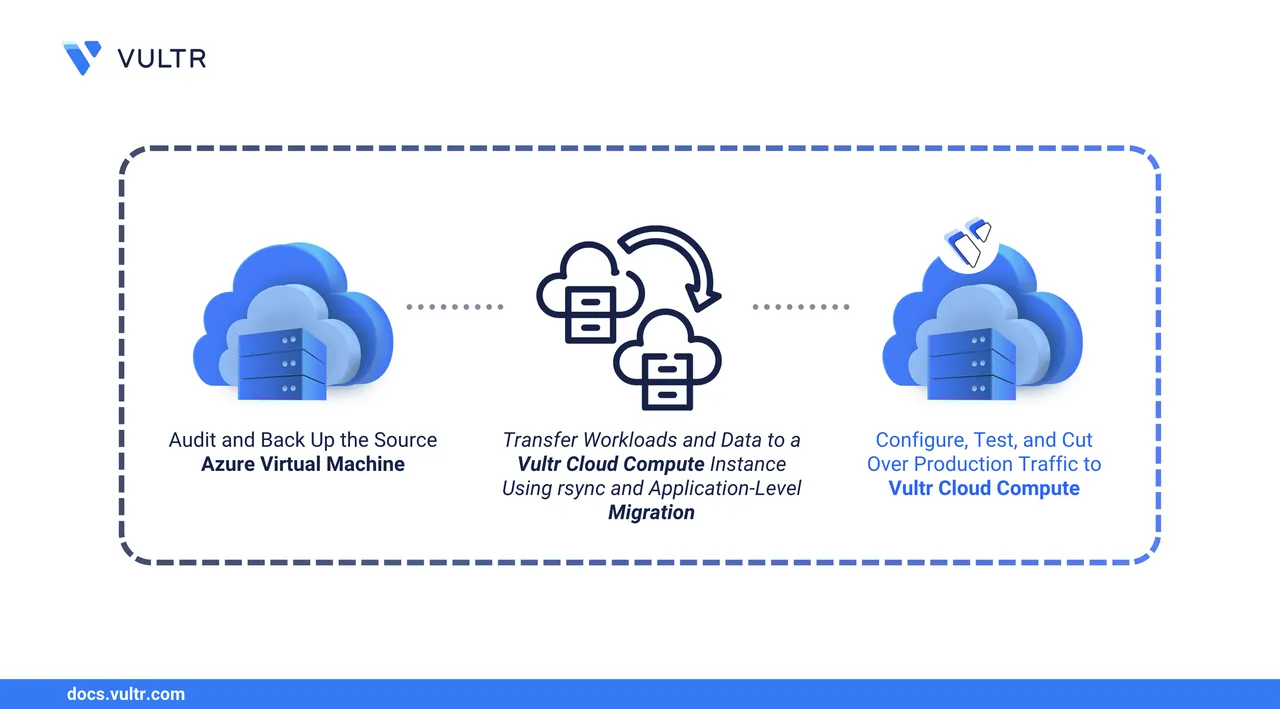 This guide explains how to migrate a Linux-based Azure VM to Vultr Cloud Compute at the application level, ensuring your workloads transition smoothly without carrying over Azure-specific dependencies.